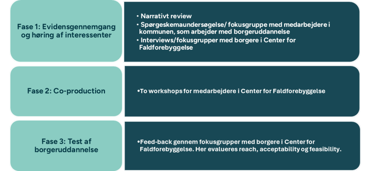 - Et konkret og piloteret borgeruddannelsestilbud til borgere med forskellig sundhedskompetence og behov for faldforebyggelse.